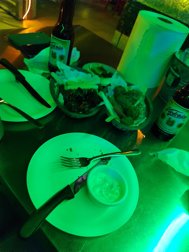 En general venden comida rápida de muy buen sabor, Alitas y Costillitas bañadas en la salsa de tu elección que puede ser picante, dulce o una mezcla de de ambos, también venden hamburguesas, papas, aros de cebolla y muchas otras cosas más; así como cervezas de otras...