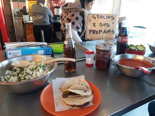 Absolutely the BEST morning/lunch street food possible in Juarez! I pedal beside this fine eatery every time when going to Casa de Adobe/Parque Madero, and always stop to buy 4-8 soft tacos to share with Curator Alfredo. There is a small turnout for motor vehicles, usually full, so most people park their vehicles on the street--including me! (Surprising how much room my Doublevision takes) I love pedaling in Cd. Juarez/Valle de Juarez, Ruta Dos, from Ft. Hancock/El Porveñir POE to Reforma to San Agustin (stop & visit the Museo!) to Juarez to Casa de Adobe/Parque Madero/Boundary Marker One to Anapra to San Jeronimo/Santa Teresa POE. It is so much safer than the last decade/cartel wars. While you cannot flaunt bling/be ugly, you will feel welcome. It is ironic that the State Department posted a warning about travel here because "nine persons were murdered January-June2014" , but was there a warning about not traveling to HoustonTX, where ONE HUNDRED FIFTY-FIVE persons were murdered during the same period? Or MadisonWI, which had 22 murders? Practice common sense, and you, too, will enjoy this wonderful part of the HIDDEN GEM OF THE WORLD, THE CROSSROADS OF NORTH AMERICA, anchored by Cd. Juarez, El Paso, & Las Cruces; an exciting, international site of three states and two countries. Oh, when crossing into the USM, NO guns, bullets, munitions, etc., because you WILL go to jail; when crossing back into the USA, be sure you have a valid...
