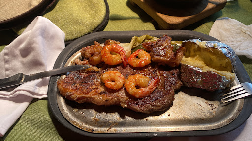 Ordenamos un asadero con rajas y tuétanos de entrada. Platillo principal un corte recomendado por el Mesero. ¡Nos trajo todo junto! Y yooo 😭 no le dije nada al mesero, política de cero quejas en los restaurantes hahah. Por regla, si traes las entradas junto con el plato principal, no podrás disfrutar algo sin que se enfríe algo. En fin…. Probé los tuétanos, los sirven con una salsa como de champiñones riquísima. En vdd estaban ricos! El asadero con rajas, en verdad era excelente!, textura, sabor, estaba espectacular. El corte, fue excelente, lo pedimos a término exacto, es decir al punto. Jugoso, rojo, blando, mucho sabor, excelente! EL POSTRE….riquísimo!, una copa de nieve con flan y loción de café, en vdd de los mejores.
