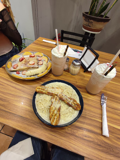 Es un lugar sumamente agradable y tranquilo, perfecto para ir a platicar y relajarse a la vez. Algo que me gustaría destacar es la velocidad del servicio, únicamente había dos muchachos atendiendo y, de alguna forma que no me explico, estuvieron atendiendo a todos con gran celeridad, en 10 minutos ya teníamos en la mesa todo lo pedido; un aplauso por ello. No doy 5 estrellas a la comida porque únicamente pedí una hamburguesa y me falta probar más del menú; por el momento, la hamburguesa española (que fue la que pedí) era de muy buen sabor, aunque no lo máximo que puede encontrarse en el amplio mundo de las hamburguesas. Eso sí, la presentación tanto de la comida como de las bebidas es de un gran nivel, excelente con esto, y el sabor tanto de los frappes, cócteles y jugos es perfecto. Sigan así, hace falta más lugares como el suyo. Ya tienen un...