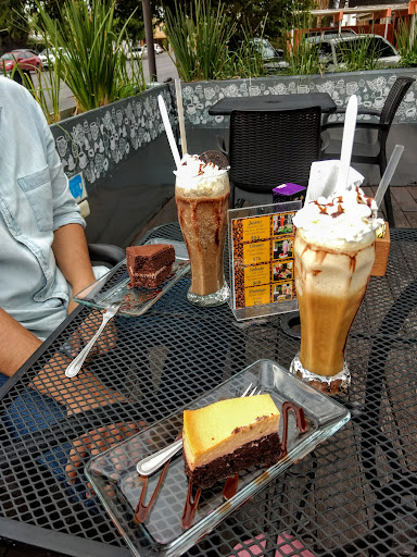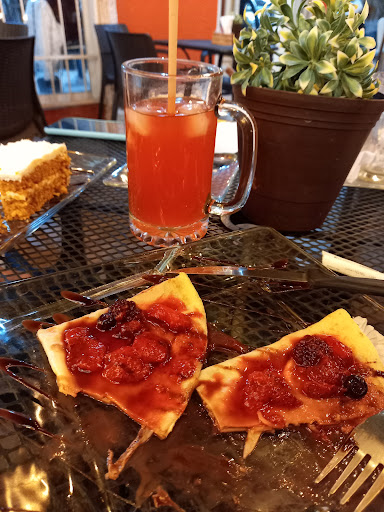 Read moreEs un lugar muy agradable, la terraza está muy amena y la música buena para platicar. El menú es amplio para ser una cafetería, ya que no solo hay cafés, postres y crepas, también cuentan con pizzas, baguettes, entre otras cosas. El frappé de rompope y de galleta fue lo que nosotros probamos y estaban muy ricos, al igual que el pastel de chocolate y el chocoflan. La crepa de jamón, queso y salsa de la casa estaba rica, solamente le faltaba un poco de sal. Muy...