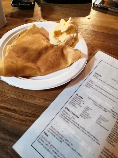 Read moreMuy ricas las crepas, probamos la Mangazo con nieve de vainilla, y armamos otra con cajeta, queso crema y nuez. Nos gustaron mucho las dos. El Cajelatte y el Té Chai también están muy ricos. Ya no tienen los pays artesanales, así que esos no los pudimos probar. El lugar y el ambiente muy acogedores. Los chicos que atienden...