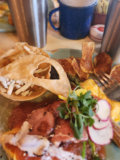 I don't believe the previous 2 star reviews of this place are justified. The chilaquiles were great with chicharron prensado. The only item that I did not like was the cafe de olla. It was not good and cold for me but my wife enjoyed it, other than temperature. I ordered a regular without issues. Burgers were good but one kid complained that it was a bit salty but it was prepared well for me. The portions were good and the price was great. I thought service was good although I was requesting service more actively. The black walls make it a unique place. It gives it character. I thought it was clean although paint did need touchups. It was still a great experience. Highly recommended. Street...