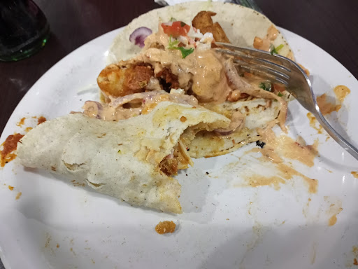 Read morePues la comida está okay, es un buen valor-precio, eso sí. El sabor está bien ya con el pico de gallo, guacamole (que ha de ser otra cosa o rebajado, pero está bien), cebollas y salsas. Eso sí, el capeado puede llegar a ser demasiado ya que cada taco está muy bien servido. El té shake pues nada especial, pero relativamente barato en comparación a otros lugares. Las instalaciones invitan a no quedarte mucho, está medio depresivo, al menos por la tarde. El servicio estuvo bien, cumplen, aunque fue poquito tardado para ser dos tacos y no haber casi gente. Volvería a ir, pero recuerdo este lugar con comida más buena antes. Está bien para cuando traes hambre y no tanto dinero para ir a un restaurante fancy. A la próxima pido un filete...