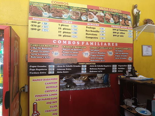 Read moreLa comida esta super rica y muchísimo mas barato que cualquier otro lugar de Alitas y Boneless. Se piensa que el pollo lo hacen desde cero junto con las salsas entonces no pareciera tener algun proceso malo que dañe el pollo. Simplemente rico, barato y te...