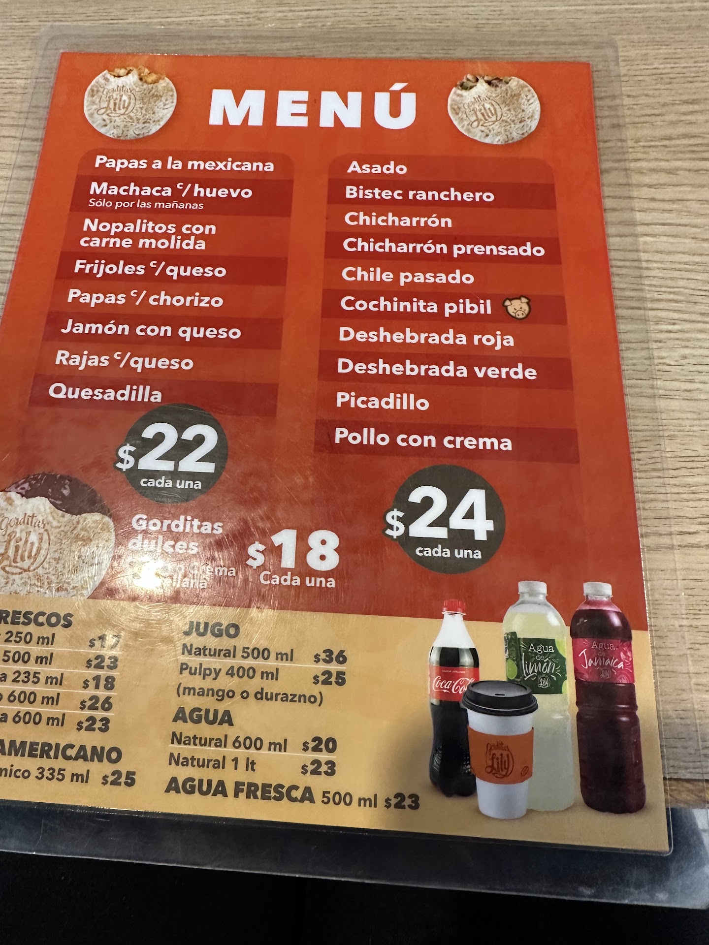 Read moreEra cliente asiduo desde peque... Y siemore fueron de las goeditas mas ricas que haya probado solo que para mi gusto siempre les faltaba un poco de sal a algunos guisos y le sobraba in poco a los de más. Aunque era muy pequeño el lugar para comer siemore fueron fantásticas. Ahora que lo remodelaron pues si tiene mas caché y todo aunque la gente se saque de onda un poco siguen siendo las mismas gorditas de antes aunque el precio (me quedé en 15 pesos) si es algo elevado el precio a mi parecer aunque es el problema de...