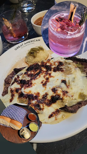 Read moreUn lugar super cómodo que recomiendo es aquí, el ambiente es placentero, ya que la música, es agradable y variada... Y por lo regular paso hoooras... La verdad es que siempre hay lista de espera, pero esto no es problema, ya que la ventaja que tienes, es que te apuntas con las hosts, y dejas tu número, así puedes esperar tu turno, desde tu auto, hay una app, para reservar, pero ahí si te quedo mal, porque no pregunté como funciona, jejeje.. El servicio de los meseros me fasina, siempre de buenas y super atentos en responder tus dudas, amo que te recomiendan cosas segun los gustos que les describes... Aquí la especialidad son los cortes, me gusta que te pueden mostrar la sección de carne en crudo, para que elijas de donde a donde quieres tu corte... Tambien, venden ensaladas, y otras opciones en el menú, pero yo siempre elijo algun corte.. Tienen alta gama de variedad de vinos y licores, así como de bebidas sin alcohol.. El día de ayer yo pedí la bebida de temporada, que es el pequeño video que dejo adjunto con mi reseña, venía muy cocqueta arriba de su trineo, super navideño el asunto, amé... y por cierto deliciosa! El panecito que te llevan para iniciar: 10/10, muy rico, calientito, recien hecho y con las salsitas y mantequilla, es un aperitivo que me encanta... Todos los postres estan muy ricos! Se tiene ambiente familiar, no hay área de juegos para niños, puedes pedir para ellos alguna sugerencia del mesero (te recomiendo el mac&cheese). Me gusta mucho la decoración, para poder tomarte fotos super bonitas! y la limpieza, los baños siempre estan presentables, y como en pocos lugares, ademas de jabón de manos, ahi hay loción para manos, que por cierto, huele muy rico (por si te pasa como a mi, que se me olvida mi crema de manos). Antes de entrar a los baños, hay un área decorada super linda con foquitos, ideal para tomarte fotos y videos individual y en grupo.. El estacionamiento es gratis en la plaza, y se tiene la opción de valet parking... Otra peculiaridad, es que aqui, tambien puedes comprar ciertas carnes crudas, para si alguna vez se arma la carnita asada en tu casa y eres de los que les gusta cocinar... Si no haz visitado aquí, dejame decirte que te estas perdiendo de una joya de...