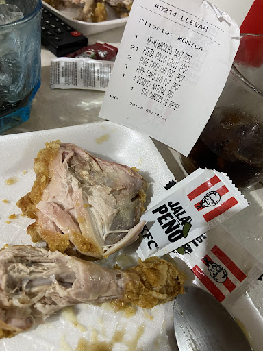 Read moreMuy mal servicio por parte de el joven Daniel que estaba en la caja el día 25 feb 2024, la piezas solo te dan pierna y muslo, pedí un paquete familiar de 18 piezas y para variar te entregan el paquete incompleto, me faltaron dos piezas fui a reclamar y no era la una persona reclamando piezas o faltante en su pedido, la gerente estaba ahí de ayudante y ella fue la que terminó de ok en mi pedido y cuando me vio que regresé a reclamar se metió y ya no salió. Pésimo servicio, el único joven cordial y amable fue Alfredo. Un jovencito que termina de entregar ya cuando está el pedido se supone que completo, . No recomiendo llr nada...