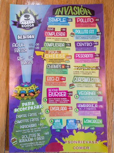 Read moreDe mis spots favoritos en el centro de la ciudad, amo las hamburguesas que tienen en Konga🍔🤤💓 y las miles de variedades y opciones para todo tipo de gustos, desde la hamburguesa con chile chilaca, la que tiene betabel, la vengana y vegetariana, todas deliciosas y únicas, además de la excelente comida y servicio. Este lugar tiene el mejor ambiente y un mural de otra galaxia que pinto División del Norte que te va a tener entretenidx mientras comes tu burguer. Tip secreto: No olvides darte un masajito en la espalda con la máquina vintage de masajes que tienen en el local de Konga burguer centro, super relajante y divertido 💖 ir a este lugar es toda una...