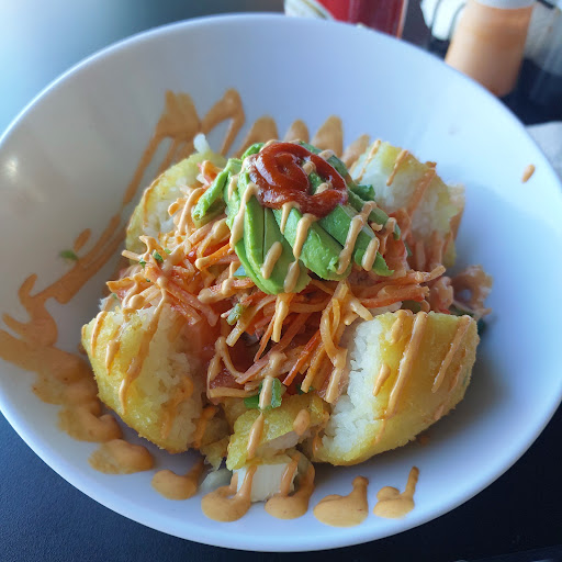 COMIDA: La bola de arroz no viene en vano el nombre era mas arroz que relleno, una aventada de salmon y otra de camaron, cubitos de queso crema y aguacatito. Excelente presentacion y el empanizado estaba rico pero enserio era demasiado arroz y no me gustó la consistencia, parecia arroz Cacerola pero batido.