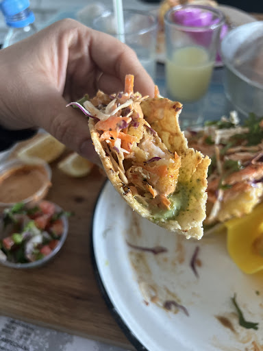 Nos dieron un botecito pequeño de totopos pero no se si eran sobras casi todos estaba trozados. Pedimos caldo de mariscos y solo tenía camarón y pescado... si tenía buen sabor pero solo tenía esos , no quisimos que incluyeran ostión pero estaba muy raquítico para los 232 pesos que cuesta cada caldo. Y si se tardan mucho para servir... la mesera única que atendía le falta mayor atención. y las bebidas casi cualquiera que pides lo mínimo te cuesta 62 pesos... solo el refresco en la ta cuesta 35 pesos... Los precios de cada platillos rondan entre 250 y 600 .. los tacos que son aprox 4 unos...