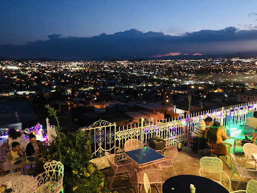 Read moreHorrible lugar, cero recomendable. Lo único bueno que ofrece es la vista y para eso mejor ir al mirador del cerro coronel el cual tiene mejor vista y gratis. Precios muy caros, cafés y bebidas muy chicas y muy caros; comida muy mala, fria, seca, sin sabor, chica y muy cara; mal atención de los meseros, tardan demasiado en llevarte tu orden y no se vuelven a aparecer en tu mesa; la distribución del lugar horrible, incluso hasta peligrosa, hay muchos escalones y desniveles mal planificados, barandales y decoración muy estorbosa, definitivamente el lugar no está acondicionado para alguien en silla de ruedas, andador, carreolas o con dificultad para caminar; el mobiliario muy deplorable, mesas y sillas tambalean, no tienen una superficie lisa donde poner tu comida, son incomodos y viejos; y para rematar la noche y el haber tenido una mala experiencia en el café (he ido varias veces y en todas han sido exactamente igual) hay un viejito en el estacionamiento que te obliga a darle propina, incluso si no tienes dinero te empieza a ofender y decir groserias. No vayan, no hagan caso de lo que...