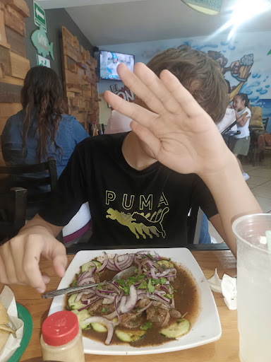 La comida esta rica pero sirven la mitad de lo que sirven en otros lugares de mariscos por el mismo precio, usualmente yo pido un platillo en cualquier lugar y me lleno pero aquí no me llene. Los mariscos son muy pequeños en los platillos, por ejemplo en señor camarón yo si me como 6 camarones de la ola de camarones me lleno pero estos camarones son tan pequeños que me como 8 y sigo con hambre y eso que soy una persona que se llena rápido. Otra observación es que no hay mucha variedad en el menú, es decir no hay tostadas, no hay casi variedades de filete de pescado, etc. Y tardan mucho en traer los platillos y no dan consomé. Lo único que si es que son amables y la comida esta rica pero con el mismo costo puedo comer más cantidad y más rico en otro lugar. No volvería a ir pero espero que mejoren su servicio y les vaya bien. Si llegan a ir, necesitan pedir dos platillos por persona, no se van a llenar, se los digo yo que soy una persona delgada y hasta con una nieve me lleno. Por cierto las personas en la cocina comiendo, platicando, tomando y viendo tele... Supongo que por eso el servicio es lento, se...