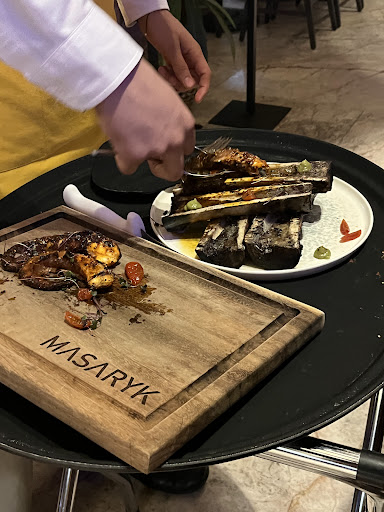 El tema de la visita a este lugar fue "temporada de posadas", y con mis amiigas workaholics Hubo que reservar, algo que por la misma temporada lo super agradezco...no hay nada como llegar con la seguridad y tranquilidad de que tu lugar esta seguro, claro respetando tiempos Cuando llegue no había nadie en el lobby, nadie que te indicara por donde continuar o si ya te esperaban, en fin El mesero muy cortez se presento, nos sugirió bebida sin alcohol y estuvo muy al pendiente de nosotras En un inicio nos asignaron una mesa, claro teníamos reservacion, pero nos cambiaron de ubicacion con una excusa poco verídica, el lugar no estaba tan lleno así que pudimos escoger y resulto mejor de lo que creímos Comenzamos con las bebidas, yo pedí una piñada que disfruté en cada sorbo A la hora de ordenar, no batallamos porque coincidimos con un platillo fuerte c/u y un acompañamiento El menú consistió en tacos de rib eye/tacos de alcachofa; papas fritas; esparragos; aguacate preparado...todos los alimentos deliciosamente cocinados, en su punto y finamente preparados, la presentacioón sin lugar a dudas fue excelsa Estuvimos realmente agusto platicando y conviviendo, la música a su vez estuvo agradable...tenían un dj en una consola muy elegante con variedad de música para el ambiente Como buena onterprete de reseñas, no me podía ir del lugar sin visitar el baño: UN DETALLE SOBERVIO, esta ambientado como si estuvieras en un bosque y la músiquita eran pajatiitos que de pronto cantaban El diseño del inhodoro era tal cual un bosque, con el tanque suspendido y para tirar de la palanca, jalabas una cadeniita realmente simpatica, el jabon es de espuma, cosa que yo tan piquis amo porque me reseca solo minimamente mis manos y las saniitas son totalmente de lujo Los precios son realmente concientes, no me parecierón descabechados...son muy justos en la relacion precio/calidad/lugar Cosas a MejoraR del lugar: *A la hora de que nos llegó la cuenta nos cobrarón una botella en lugar de una copa de vino rosado, obvio lo notificamos y se aclaro de inmediato *Ya para retirarnos pedímos al mesero apoyo con la tradicional foto del recuerdo, él nos condujo con rl gerente por cuestiones de logistica en el servicio El gerente muy amable y paciente nos tomó las fotos pero salierón PESIMAS, y no hay nada que me choque mas que publicar fotos horribles que parecen tomadas con un galaxy fuera de serie o con un celular de camara quebrada 😟 "El diablo esta en los detalles" y ésto debe ser de principio a fin