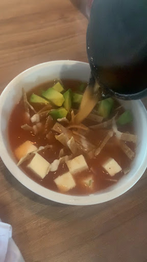 The food was tasty but wouldnât order the tortilla soup again, the poblano shrimps were really good. They bring homemade totopos with pretty tasty salsas as a starter. The service was great maybe more attention to the customers would be better. Presentation of the food was also pretty fancy. The place is nice with good music, it is also clean. The deserts were amazing, would recommend both the lava cake and the corn bread that comes with a kinda jam inside. Finally we got carajillos, one mazapĂĄn flavored that was really good and the other one original good as well. I think the pricing is good with the service and food you get for it, everything was...