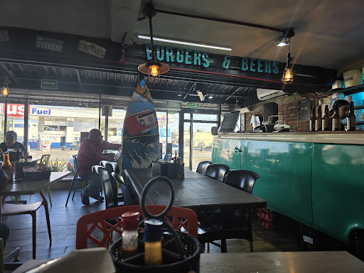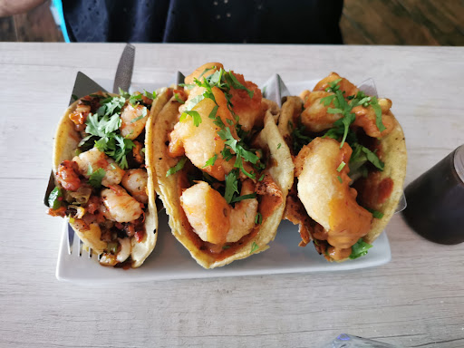 Un lugar sencillo pero con mucho sabor, probamos un FILETE AL AJO, muy rico, con la cantidad exacta de ajo y aceite de oliva, acompañado de una rica ensalada a la vinagreta y arroz blanco, FILETE EMPANIZADO, con el mismo acompañamiento anterior, 2 TACOS CALIFORNIA, camarones capeados con verduras, salsa chipotle con costra de queso, 2 Tacos de TACOS CALIFORNIA Y 1 TACO DE CAMARÓN CAMARGO, este ultimo con camarón y costra de queso, 1 BURGER VAQUERA 1, con 200 gramos de una rica carne, jamón, salchicha campestre y costra de queso, un chile toreado y papas fritas 1 BURGER DE CAMARÓN, con 200 gramos de una rica carne, jamón, camarones fritos bañados en salsa chipotle un chile toreado y papas fritas. Toco acompañado cerveza Ultra y Corona, bien frías, y Coca cola Zero. Muy familiar y de costos...