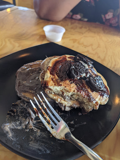 Was going to be seated at a table and requested a booth, the waitress said it would take longer for us to be attended. We agreed, but were just taken to another table but farther away from the previous one. For 2 of our plates, bacon was no longer available so we were offered an extra egg, pancake or a slice of ham. In my mind, I was like if you have several plates in the menu with bacon how are you running out. Who is doing inventory and purchasing stuff. We declined the offer, but when the food came surprise, surprise. They decided to add berries and whipped cream to one of the pancakes. The poor waitress was like is it ok that this was added. My daughter didn't want to be rude and said yes. It wasn't what she ordered and started crying. We didn't visit the restroom during this visit. The chilaquiles verdes are very acidic and my beans were cold. The asado tastes more like Chile Colorado as...