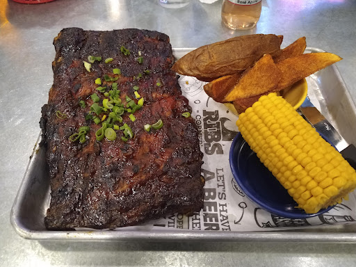 Read moreMi novia y yo fuimos buscando un buen lugar para disfrutar del partido de los Packers y arribamos a Ribs Corner, pedimos cada uno nuestro respectivo tarro de cerveza y ordenamos, mi novia pidio Baby Ribs de las cuales no hay fallo alguno, estaban muy buenas y a ella le encantan, yo solicité Brisket el cual estaba muy seco pero con el BBQ Habanero sabía de muy buena forma. De sides, solicitamos el honey corn bread el cual aunque a mí me gusto a mi novia no le convenció, pedimos un pure de papá que tenia buen sabor, un elote dulce que estaba pues regular nada fuera de lo común y una crema de papá, que a decir verdad estaba insípido el sabor. Finalmente aunque la estábamos pasando bien pedimos un postre el cual nos decepcionó, es el New York Cheesecake, venía acompañado de una nieve que parecía nieve de azúcar no apta para diabéticos, una mermelada de fresa sobre el cake igual de dulce y un sabor regular sin chiste del pay. Lo mas destacable fue la pantalla para ver el juego asi como...