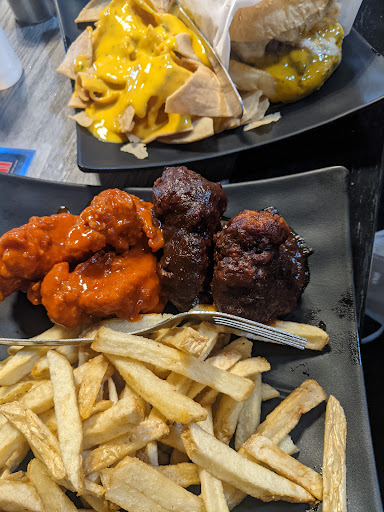 La comida es regular y no está caliente. Las papas y los boneless y las alitas estaban tibios. Las salsas están bien, no son espectaculares - tienen potencial para ser excelentes. Los aros de cebolla son de los más baratos, apenas tienen trozos de cebolla y son más masa que nada. Ya no tienen los jalapeños rellenos de queso, pero siguen en el menú.