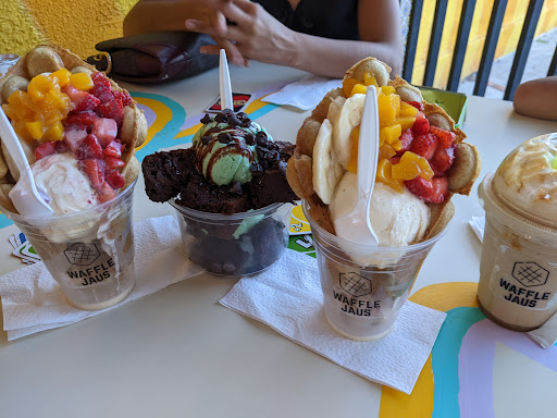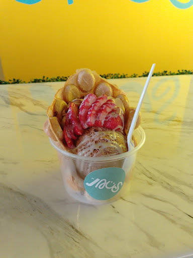 Mas de 1 hora de espera para recibir lo que pedimos, super tardado, asi que ten en cuenta de que si vas a ordenar algo tardaras al menos 1 hora minimo, no habia lugares para sentarse ya que estaba todo lleno, asi como el lugar del estacionamiento se batallo mucho debido a que hay pocos lugares, sobre el producto que venden se me hizo muy sencillo, lo que pedimos fueron Choco Lover, por el precio me esperaba algo mas, sin duda se ve muy bien pero solo eso para la foto, porque en sabor, solo era un pedazo de harina con una bola de nieve y algo de chocolates, osea en si pura harina ya que era una pequeña bola que no abastecia el waffle, la verdad esperaba mas cumplieron con la foto se ve bien pero la verdad es que apesar de que se ve genial esteticamente, es algo muy sencillo sin chiste que no volvería a comprar, se podria decir que estuvo algo "chafa" en...