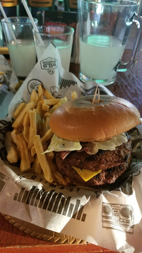 When I pulled up to the parking lot I couldn’t decide between Boneless and Beers and Wild Rooster, but since it seemed Wild Rooster had more people dining outside, it became my choice. I ordered the bone-in wings and quickly found out they are breaded, which if I had known, I would have just ordered boneless... I don’t like breading, so I moved on to ordering a cheeseburger with bacon, now I don’t know what the ratio is on meat to filling, but 100% pure beef it was not, it also had a strange taste of spicy thousand island dressing, which I didn’t enjoy... So I just ate the sudo-meat and the fry’s and enjoyed another Dos XX.... Would I say the food is terrible, no. It just wasn’t what I was expecting and to be honest, I was disappointed... The server did a good job and the place was clean, but If your looking for delicious food that makes you salivate, search...