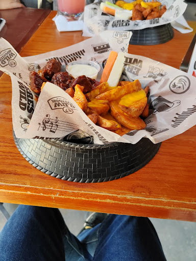 Read morePues es un lugar muy promedio. No resalta ni en espacio, ambiente, comida, servicio o precios. La comida está bien por el precio. Las salsas no están picosas; las papas bien. Tienen videos de batos musculosos haciendo cosas arriesgadas en vez de poner partidos de algo que no sea fútbol. Es un sports bar, digo, debería haber algo sobre otros deportes, aunque no sea en vivo. Las limonadas de frutos rojos estaban de diferentes tonalidades todas, o sea que falta consistencia. El servicio fue bueno. El mesero fue presto y preciso, no trajo órdenes mal ni se tardaba. La terraza está mejor porque no se siente claustrofóbico como adentro, y mantienen una temperatura agradable con los calentones. En general es un lugar al que ya sabes que está okay, pero nada especial. He ido varias veces y nunca ha estado feo nada, así que es una apuesta segura, probablemente. Yo sé que esto no es problema del bar, pero encontrar estacionamiento cerca es imposible los...