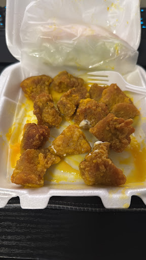 Fui con unas amigas a comer como de costumbre, llevo más de 4 años comiendo en wings station y no me a pasado algo parecido, bueno el caso es que pedí boneles en búfalo, me comí tres y le iba a hacer dip a mis verduras con la salsa, y en eso veo un arete negro en la salsa fui a reclamar y no me cobraron los boneles y me los cambiaron, pero la neta no...