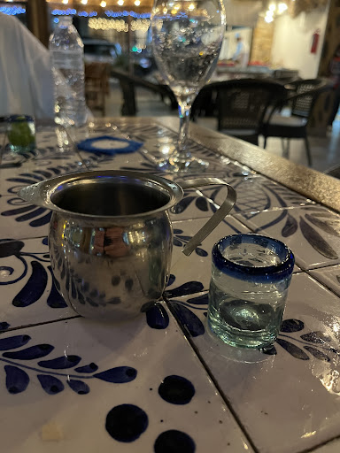My husband and I stopped here when we saw a parking sign as it was too early to check into our air bnb. We wanted a place we could keep an eye on the car because we have a lot of work equipment. The staff was extremely accommodating, not at the table constantly but at the perfect times. There's a beautiful mariachi mural on a wall next to two color birds that are taking care of an egg. We ordered the seafood platter for two and three garlic butter sauce made everything amazing. My only caveat would be that the scallops on the platter were not full sized, more like little dimes. The bread, the drinks, achs the rest of the seafood was great. Clean bathrooms with paper and soap. I ordered the cantarito with mescal over tequila as I prefer mescal and the drink was strong but super refreshing without...