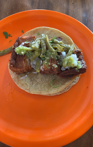Son bastos al servir los alimentos, pero el sabor de las carnitas y el tocino de barriga es muy equis, tirándole a feo. El queso que le ponen a los tacos me lo dieron medio pasado y olía a echado a perder. Fui con mi familia a comer ahí por recomendaciones, pero honestamente yo no los recomiendo en lo absoluto. El agua mineral preparada con limón y sal le ponen jugo de limón artificial y me supo horrible y el ambiente es un poco sucio, los asientos y mesas están hechas de madera y se les salen los clavos, así que tengan cuidado al momento de sentarse y la música...bueno...si les gusta las canciones tipo peso pluma, les gustará. Muy personalmente detesto ese tipo de ambientes. El servicio fue bueno; un...