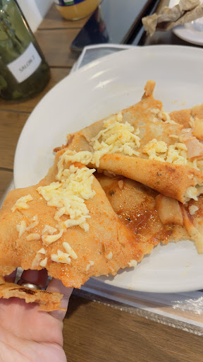 Tienen una enorme área de oportunidad con respecto a sus alimentos y bebidas. La pizza no está nada buena y para ser “de horno de piedra” literalmente está fría, el queso y la masa son de muy mala calidad. Pedi una crepa Hawaiana y no pusieron queso manchego y se molestaron cuando les pregunté si llevaba queso y literal solo lo pusieron, nada de que se derritiera. Y las papas a la francesa con sabor y muchísima grasa. El lugar está “lindo”. El pulque no es “fresco” es embotellado, para que no se las...