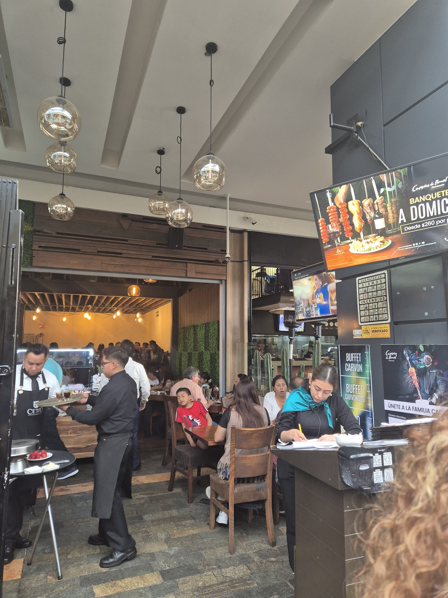 Asistí hace como semana y media o 2 semanas el servicio del mesero nada fuera de lo normal pero si fue bastante molesto que a pesar de pedir algo te esté intente e intente vender lo que él quiere, aparte es muy desagradable en cuanto a su imagen tan siquiera parece como si no se bañara el que tenga el cabello chino no significa que no se deba peinar y luego percibir que desprende un olor de que la noche anterior se pasó de copas, algunos cortes tardaron en pasar pero fue mejorando todo bien en cuanto al servicio de carne y barras, al momento de pedir la cuenta el mesero cobró y nos pidió todavía de manera amable ”fue más exigida que pedida” que si se le podía apoyar con el servicio sugerido cuando ni siquiera merecía el 10% que pidió, Ah y luego estar escuchando o darse cuenta de como habla de sus mismas compañeras de trabajo o de las mismas comensales de manera morbosa con uno de sus compañeros moreno de complexión tosca es muy desagradable deberían empezar a analizar a la gente que contratan y no llenar su plantilla por llenar, uno no sale a comer con la intención de que le miren los pechos o el trasero a cada rato y hagan comentarios sobre. El lugar es bueno pero enserio que fue la peor experiencia que tuve en cuestión...