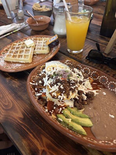 Read moreMuy buena opción excelente servicio, los paquetes de desayuno son una gran opcion, al leerlos en el menú pareciera mucho, pero los platos estan bien servidos sin llegar a ser enormes, los waffles no nos gustaron, no tienen consistencia crujiente, no estan malos pero no es lo que esperábamos, el platillo de 3 huevos, chicharron, y chilaquiles muy bueno, pero lo mejor es el servicio, pedimos cosas especiales y muy amablemente nos atendieron, siempre pendientes y aun precio...