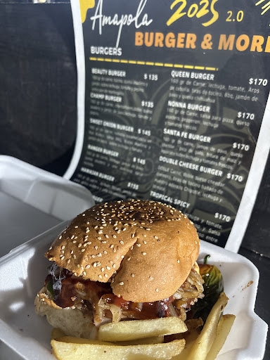 Las hamburguesas son simplemente deliciosas!!! Personalmente recomiendo la hawaiana, ya que la piña le da un toque dulce pero a la vez jugoso y muy muy deliciosos. Son hamburguesas grandes por lo que el precio es bastante justo. Las papas santa fe son otra deliciosa maravilla, muy ricas, jamás las había probado con ese estilo. Sin duda alguna no hay mejores hamburguesas en Saltillo que las de Amapola burger, se los dice un gordo, y los gordos nunca mentimos con la comida. Denle una oportunidad, se que les...