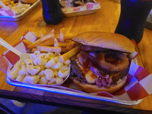 Precio justo, gastas aprox 200-250 pesos por persona. Según recuerdo, un día a la semana hay promoción de 2 hamburguesas con papas gratis y las dos hamburguesas que pedimos (brisket y pulled pork) estaban muy buenas. Ambas hamburguesas tenían bastante carne. No soy conocedora del mundo de las carnes y el asador, pero en mi opinión la carne sabía muy bien, además las salsas delis y hasta el pan estaba suavecito. También el mac&cheese está rico. Nos atendieron rápido y así también estuvo la comida. Las mesas están básicamente al aire libre (hay una parte con techo metálico y otra con techo de malla) entonces si da frío. Nos fijamos que tienen objetos para jugar como un blanco para dardos, pero nosotros íbamos más por la comida entonces no preguntamos. Tienen lugares para estacionar aprox 3 autos y al pagar...