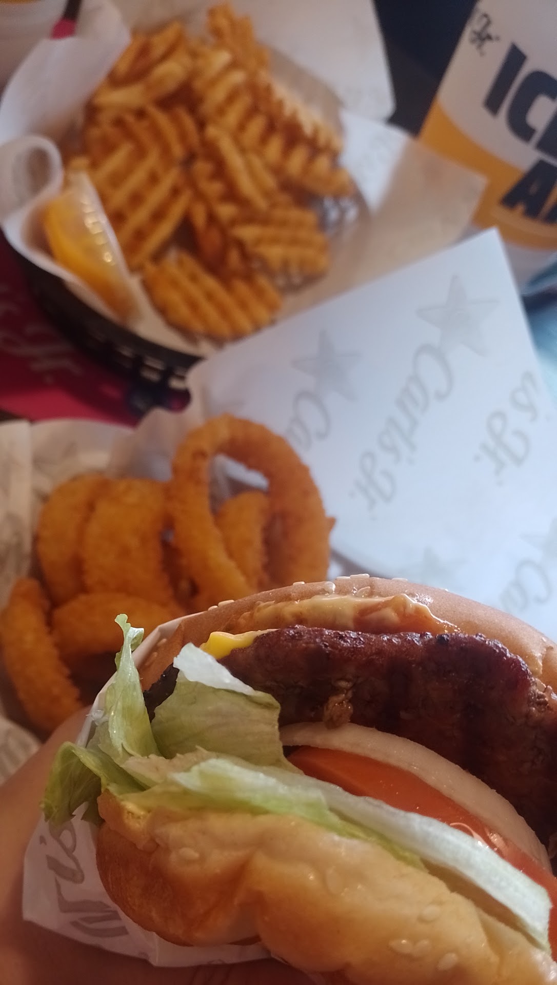 Read moreComo cualquier otro Carl's es muy bueno, sin embargo, algo a mejorar: a las sodas les falta algo de gas, como que cambiaron al proveedor de los pepinillos porque ahora saben diferentes (un poco crudos) en dos ocasiones hemos tenido problemas con el "Drive thru"... 3.1. La primera, nos sirvieron agua mineral en lugar de Sprite, y como pedimos para llevar, nos dimos cuenta hasta que llegamos a casa :/ (mejor revisar con un sorbito jaja) 3.2. La segunda, les faltó una hamburguesa completa, nos repusieron el detalle con una orden de papas sólo porque mi esposa se mostró molesta, sino dudo nos hubieran dado algo (igual, ahora revisamos todo antes de salir del drive thru pero pues, no es el...
