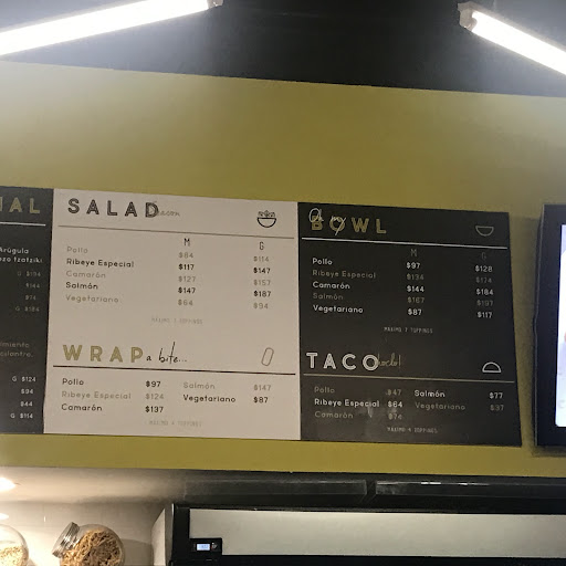 Read moreBuen lugar para disfrutar una ensalada, bowl o wrap. Tienen variedad de ingredientes y todo muy fresco y de primera calidad, es el mejor lugar que conozco en su tipo para comer algo saludable en Torreón. El precio tal vez un poco elevado considerando que las instalaciones son tipo food court y no un restaurante en si, pero la calidad del...