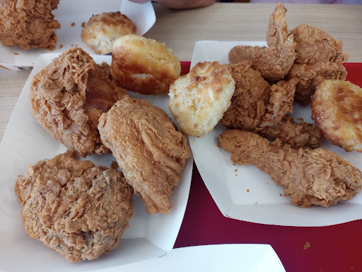 Read moreMuy mal por el pollo crudo. Perdimos para llevar en la sucursal de Periférico Sur, el tiempo de espera también es un poco tardado, creo es por qué lo fríen al momento, talvez me equivoco. Pero la.verdaders decepción fue al llegar a casa cuando nos preparamos para comer y abrimos las cajas con pollo, pues el en su mayoría estaba semi crudo, yo me comí por lo menos dos piezas que deje a medias por el pollo en rojo, (semi crudo). Es de las pocas veces que dejamos comida a medias porque no nos gustó el término de cocción, a demás de que el sabor también no es el mejor. Algo de lo rescatable fueron los bisquets que estaban buenos por lo crujiente. Espero puedan mejorar la cocción del pollo para poder volver en un futuro o de plano pues no. Siempre se puede mejorar y es el motivo...