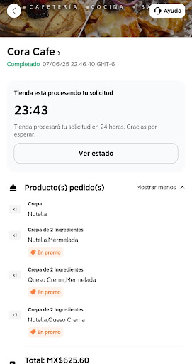 Yo pedí una crepa, la cual estaba súper fría porque le pusieron un trozo grande de queso crema, sin untar.
