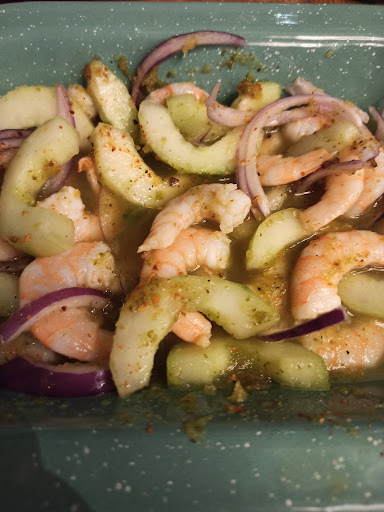Read moreFuimos con niños y me gustó que tienen un área de cine con proyector y sillitas para ellos junto al área de juegos con pelotas y resbaladilla. Me dijeron que lo remodelaron y la verdad si está bonita la decoración y ambiente ameno. Pedí un aguachile y mi esposo cóctel de camarones, ambos ricos pero la porción podría estar más grande, siento que te queda un huequito. Para niños hay combos de $99 pesos con Nuggets, pizza o pescado, papas, limonada y un postre. El único detalle fue que nos traian los caldos y faltaban dos, luego trajeron la comida y faltaron dos platillos que se tardaron como 10 minutos en traerlos, si eres familia que se esperan a comer todos al mismo tiempo esto puede ser molesto, eso sí, el sazón rico. Cuentan con amplio estacionamiento en la parte de atrás del restaurante y un área tipo terraza...