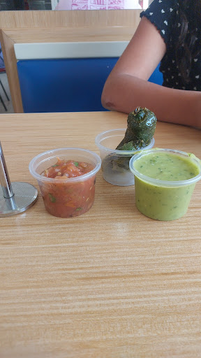 El lugar es muy amplio tiene alrededor de 60 mesas, dos barras de salsas y condimentos