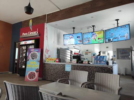 Read moreEl producto es bueno y la atención de solo 1 de los muchachos fue excelente, los demás estaban sentados en las barras (mesas) de su área de servicio escuchando música mientras el lugar está descuidado y sucio. Yo creo que como el drive estaba lleno y la tienda vacía, le ponen poco cuidado al establecimiento. Las mesas exteriores muy sucias, las jardineras secas, los juegos un tanto descuidados, los botes de basura llenos a desbordar, tanto los de la tienda (de vasos), como el del baño (de papeles). Veo muchos comentarios similares, y se les contesta que se va a mejorar, pero fui ayer 10 de agosto por la noche y la verdad no se...
