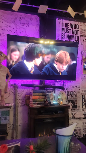 Read moreEl lugar cuenta con un ambiente muy acogedor y mágico, la decoración es el mayor fuerte del restaurante ya que te deja apreciar inmediatamente un montón de detalles de la saga de HP. Te permiten tomarte fotos con accesorios como el Sombrero Seleccionador, varitas o las batas de mago (de las 4 casas). El detalle está en el servicio, si bien el mesero es impresionantemente amable, solo atiende uno en todo el lugar, provocando que a veces llegue a demorar un poco en atender. Además, solo hay 2 o 3 cocineros y un bartender, por lo que tienes que esperar un mínimo de 45 minutos para recibir tu comida, aún si no hay mucha gente en el local. Todo es muy rico, sin embargo hay que tener cuidado con las bebidas ya que son altamente azucaradas (pedí una cerveza de mantequilla y me costó acabarla). Es un buen sitio incluso para menores, ya que pasan las películas de HP y puedes pedir juegos de mesa (obviamente temáticos). Recomiendo que vayas si eres fanático, la experiencia es increíble. Mas no es un lugar al que piense volver pronto debido a los detalles...