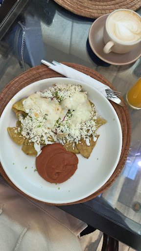 Read moreEl servicio deja mucho que desear, te toman pésimo la orden. Pregunte si la salsa verde de chilaquiles era cremosa poblana o de tomatillo y me dijeron que cremosos poblanos, claro que no eran así, si eran ácidos de tomatillo y a mí no me gustan de esa forma. Total dije igual están ricos y así los como. (No estaba nada rica la salsa así que me comí los huevos y dejé todo lo que pude de sus chilaquiles y frijoles sin sabor). Pedimos el otro desayuno, chilaquiles con pollo y huevos (pollo y huevos como ingrediente extras) pues trajeron los chilaquiles y a parte 2 huevos con salsas (que cobraron como huevos divorciados, como otro desayuno, entonces de ser 30 pesos de ingrediente extra pasó a ser $150 por 2 huevos.) Carísimo considerando lo que se consumió y la calidad de alimentos. Mil veces otro lugar en donde gastar el total de la cuenta en 2 personas pero salir contento y satisfecho: Su salsa roja si está rica y es lo único qgradable de decir, el lugar está cool tmb y su repostería se veía rica, OBVIO ya no quisimos pedir...