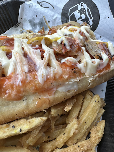 Fuimos al lugar por una recomendación en IG, el lugar es muy pequeño, por lo cual si se desea comer ahí, en fin de semana, es probable que se tenga que esperar por una mesa, sin embargo, se puede pedir para llevar. La comida vale la espera, tanto hotdog como hamburguesas son de muy buen tamaño y aparte incluyen papas, en cuanto a la calidad de la comida es tan buena como se ve. El servicio fue algo lento, debido a la gran cantidad de personas y el poco personal que atiende, sin embargo, la persona que nos atendió fue muy servicial y amable en...