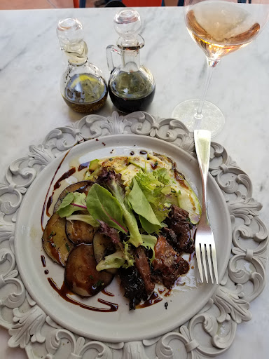 Restaurant had three red wines “by the glass”, I got the Montepulsiano de Abrusso which is as non expensive as it is not common and it paired quite well with the first two dishes. Two waiters offered support as well as the restaurant sommelier, who is the best asset of the restaurant with out letting the rest of the service group be...