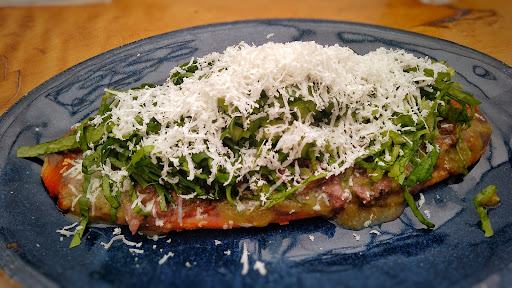 Huarache Crujiente de Rib Eye servido con salsa roja y verde y demás ingredientes que hacen una delicia para desayunar, comer o cenar. Jugosa carne finamente picada para que puedas gozar cada corte en tus cubiertos. Digno de enamorarse de él o ser infiel con el resto del menú.