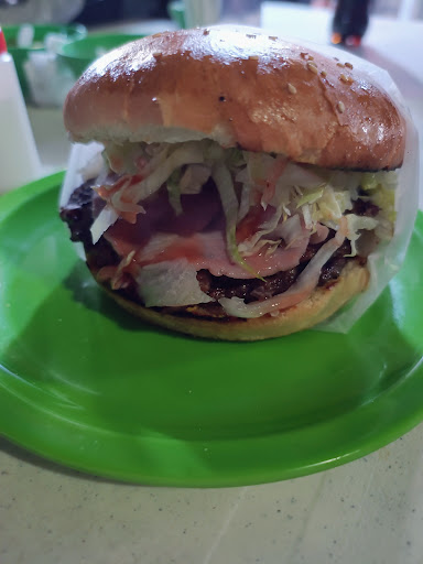 Read moreDeliciosa hamburguesa al carbón, muy bien servida de buen tamaño (pedí doble carne) con tocino y piña. Te dan botana y salsa verde adicional para que llenes a gusto. Lo que no me agradó es que la señora que las prepara tose 😖 y tose encima de la comida, (aunque se voltea a veces) y después de una pandemia hay temores y sobresaltos. Al menos debería usar cubrebocas. Por lo demás, el servicio amable y...