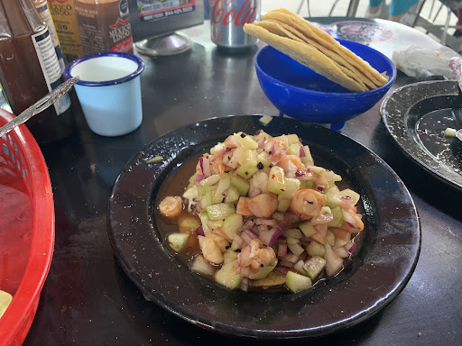 Me recomendaron este lugar la verdad fui con mis reservas el lugar no es nada nice esta. ubicado donde antes había otro restaurante de mariscos ya hace tiempo Bueno el caso es que fuimos mi esposa y yo . El lugar es sencillo espero y mejoren pero lo que primero que me llamo la atención fue que tienen un carrito de mariscos o carreta como le llaman ellos adentro traída desde Mazatlán original , !!!y Si. pensé pues esto me dio buena espina ….!!! Y saben que …… ……………Si están muy buenos los platillos yo diría excelente,como en Mazatlán pedimos un Ceviche Osuna que es una combinación de todo y estaba muy rico , luego un Aguachile, saben estupendo, y lo mejor De todo fue la tostada de callo de acha si fresco riquísimo y a muy buen precio , ya por eso regreso . Conclusión Lo recomiendo ampliamente, precios justos no tan baratos no tan caros ,Vayan y si te gusta el callo de acha pídelos !!! PS no incluí la foto de la tostada de callo de acha estaba tan buena que no la engullimos y se me pasó tomarle la fotografía Sorry pero para mi...