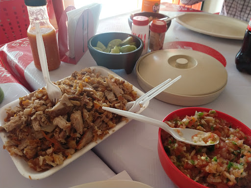 Razita si quieres ir a comer con los compas este es el lugar con un 3/4 alacanzan para 3 personas solo que si piden para llevar antes de salir habran la charola y huelan la carne por que ami me la aplicaron y me echaron unos pedazos ya medio tronadones olian medio cabronzon asi que si piden para llevar fijense bien raza pongaze truchas y bien avispados , cuando es para comer hay sirven bien pero pongan atencion cuando les pezan en la bascula avispados raza pueden pedir tortilla extra sin costo para que le echen doble tortilla y llene el animal si le echan tortilla sencilla sirvance un taco basto con carnitas y agregenle unos totopos partidos al taco ase buen crunch el pico de gallo esta conmadre y la salsas tambien pero pidan salero para que amarre con madre la coca light es de 600 ml mismo precio que las demas que traen 500...