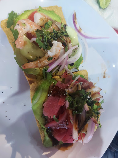 Read moreExcelente. No tomen en cuenta las opiniones negativas. El personal es amable. Las bebidas y comida muy ricas. El lugar no estaba vacío y nos atendieron en un tiempo razonable. Probamos las tostadas mixta, de camarón, atún, el alguachile (picoso) y camarones al pastor (el menos rico). Piña colada y margarita de tamarindo de 10. El precio super justo. La propina es opcional y la sugieren del 10% por favor no sean codos, es lo justo. Cuenta de 4...